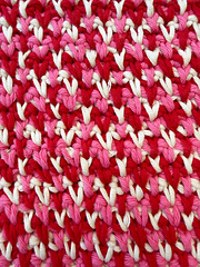 This crochet spike stitch pattern combines red, white, and pink cotton to create a textured, heart-like look with a clean single crochet border.