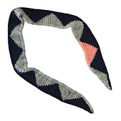 Knit a sweet narrow scarf with a fun intarsia serrated edge. Designed for DK weight yarn, choose two contrasting colours for the colourwork and add an optional bright pop of fun. Wear looped once or twice around the neck or as a hair scarf.