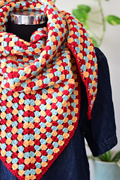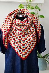 *Stillpoint* is a triangular crochet shawl worked flat in back-and-forth rows using the classic granny stitch. The shawl is made as one piece from the top center outward, with three colors alternated one row at a time and unused yarn carried along the edge without cutting. A simple single crochet edging is added along the longest side. Designed for DK weight yarn, the pattern is easily adaptable to other medium-weight yarns with an appropriate hook to achieve desired drape.