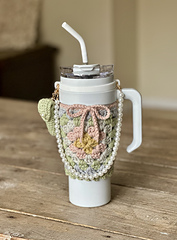 This pattern includes instructions for both a 30 oz and 40 oz sized tumbler with a closed handle (similar to a Stanley cup), as well as a 40 oz open handle tumbler, with instructions for how to best modify for other types of tumblers.