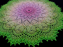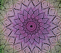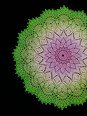Your tension will determine things like hook size, yardage, finished size, and height of stitches. Any of these things can be adjusted as needed. Using recommended thread and hook this pattern will use minimum 620 yards / 600 metres of thread. And your finished doily will be about 22” / 56 cm in diameter.