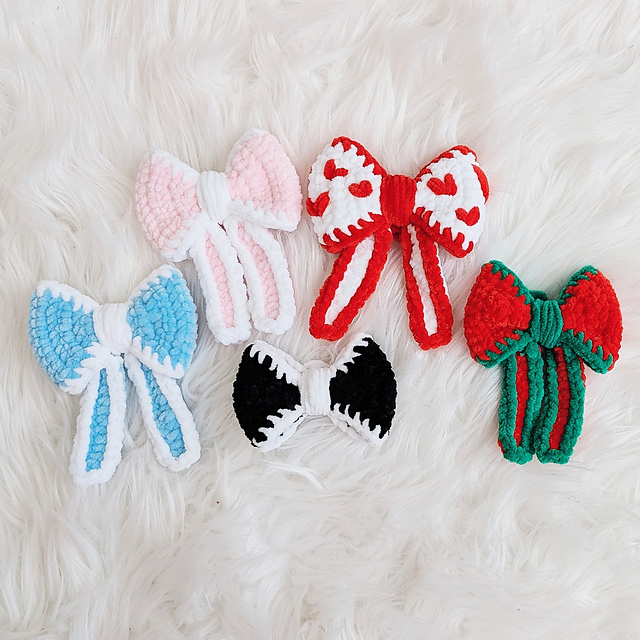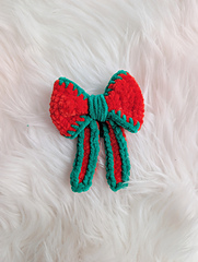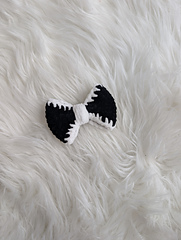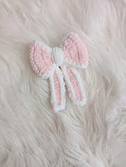 This sweet & chic crochet bow accessory is the perfect accent to presents, plushies, bags, and more! Customize the color and add optional embroidery to make it extra special.