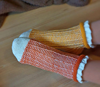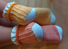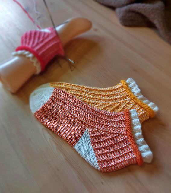 Skills required: basic knitting skills, decrease, increase, basic sock skills, short rows, gusset, turning the heel, short row toe,Kitchener stitch.
