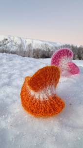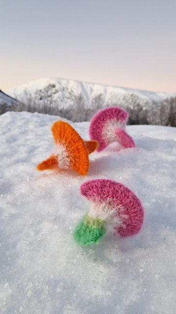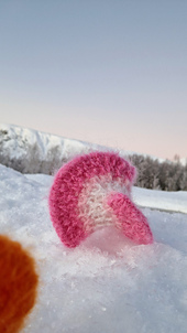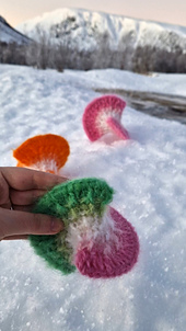 Yarn: Myk Påfugl, i.e. Påfugl in Paris (thinner mohair like Lieve or Permin could also be used for the Small size), about half a skein for size Small and 75% of a skein for size Large