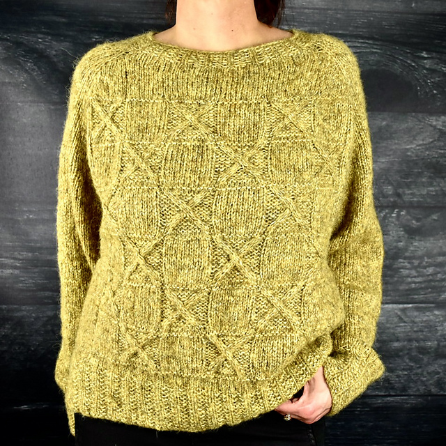 The instructions follow a clear structure: after casting on and working the neckband, you continue with increases, short rows to shape the neckline, and the setup of the raglan lines. A chart for the stitch pattern is included. The sleeves can be customized with additional decreases or extra plain rounds to achieve the desired fit.