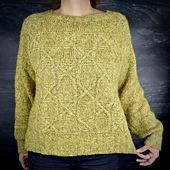 Die Anleitung beschreibt detailliert, wie der Raster 15 Sweater von oben nach unten gestrickt wird. Das Modell basiert auf einer Raglankonstruktion, bei der Körper- und Ärmelweite unabhängig voneinander angepaßt werden können. So lassen sich die Proportionen optimal auf die eigenen Maße abstimmen.