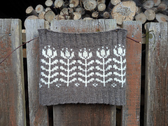 18 sts = 4 inches / 10 cm on larger needle.