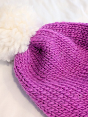 The Brawby Bobble hat is basic bobble hat perfect for beginner knitters. It features a triple folded brim in twisted rib and decreases are knitted two rows prior to casting off and is finished with a large bobble.