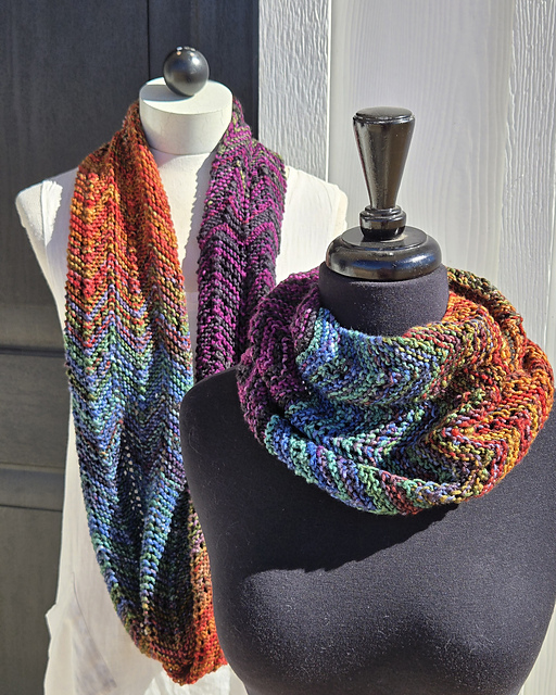Jamestown is knit in the lovely Urth Yarns Uneek Worsted yarn. It’s a long gradation, colorful self-striping yarn and enhances the chevron pattern stitch. The expanded eyelet chevron pattern is easy to memorize and looks much more complicated than it is!