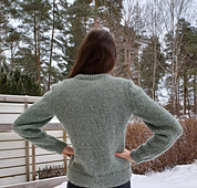 Den stickas med två trådar, en tråd DROPS Alpaca och en tråd DROPS Brushed Alpaca Silk som hålls tillsammans. Jag har använt färgerna 7323 Havsdimma (DROPS Alpaca) och 21 Salviagrön (DROPS Brushed Alpaca Silk)