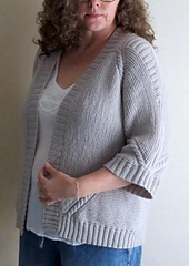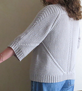Like its crochet versions, it is made of two hexagon shapes joined at the back. The hexagons are worked from the underarm outwards and are folded into an upside-down letter L - one for the left half of the body and the left sleeve, and one for the right half of the body and the right sleeve. When the body is completed, a ribbed yoke is added to create the shoulder slope and the body is finished with ribbing along the lower edge, fronts and the neck. The pattern contains instructions for cropped and long sleeves.*