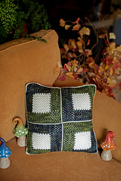 *Reminiscent of a Leprechaun's window, each panel of this pillow is made up of textured squares that are seamed together to create this unique colorwork design. Written directions, accompanying images, and the repetitive linen stitch pattern make this pattern come to life quickly and enjoyably.*