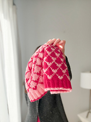 Argyle Love is a fun and quirky (yet modern) hat designed for Valentine's Day - heart motifs are sort of hidden in the traditional argyle pattern. Knit it in pinks for the season or in neutrals for all winter wear!