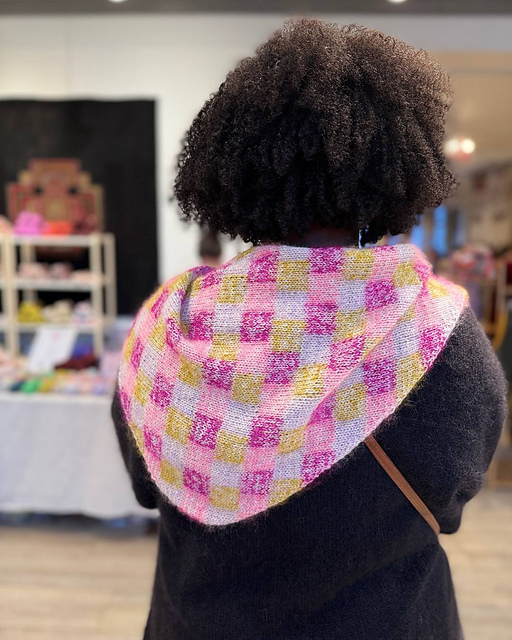 Nougat is a joyful exploration of texture and color, born from my love of intarsia and marling. By holding one strand of fingering-weight yarn together with one strand of fluffy mohair, I created a light, cozy fabric with beautiful depth.