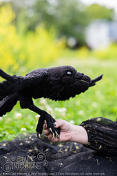 This pattern comes with instructions to make a Flying Raven! This pattern includes instructions for 1 raven body, 1 raven head, a beak, Feet/Legs, Head Feathers, Chest Feathers, an Open Flying Tail, Open Flying Wings, and an assembly section! This pattern features clear step by step instruction with a lot of row-by-row photos. The gauge is not crucial to the pattern as long as the stitches are tight enough to hold stuffing.