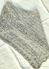 Starting with a small number of stitches, the cowl is worked in rows with increases at both edges. The right edge will form the back neck seam, while the left edge will become the top edge of the cowl. Once the back neck edge’s increases are complete, increases continue only on the left edge until it measures approximately 60 cm [23.5”]. Then, the piece is worked without further increases until this section’s length matches that of the initial back neck edge, then the stitches are bound off using the i-cord method. Finally, the back neck seam is sewn after blocking.