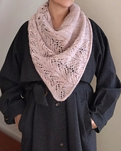Whipped Leaf Cowlは、「Whipped leaf shawl」のデザインをベースに、約1カセの糸で編めるようブラッシュアップしたコンパクト版。ショールの優雅なドレープ感はそのままに、より洗練された使い勝手の良いサイズに仕上げました。