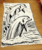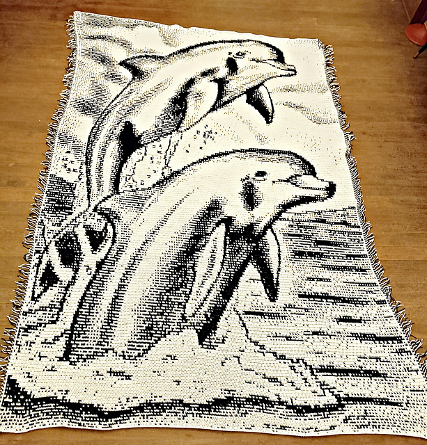 The amount of yarn used for this pattern without the border was: 3990 meters / 4350 yards (colour White) and 3458 meters / 3770 yards (colour Dark Blue)