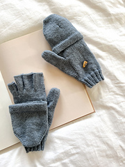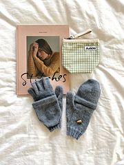 This is a knitting kit for fingerless gloves worked using the Magic Loop method. When you need to use your phone or touch a screen, you can flip the mitten top back, and when it’s cold, simply pull the flap over to keep your hands warm. These are cute and practical knitted mittens designed for winter comfort.