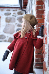 The rest of the coat is worked in stockinette stitch with a few rows of double knitting. Bind off, a colomn of purl stitches and i-cord are also used. The pattern gives room for good flow, as well as variation and fun.