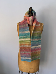 (Exact is not crucial to the success of this finished scarf. If your gauge is looser, your scarf will be wider and shorter than shown; if your gauge is tighter, your scarf will be narrower and longer than shown.)