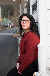 *Sample 2 – Size 5 v-neck modeled on 44”/110cm bust with 4”/10cm negative ease, Pénélope in colorway Badiane