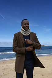 Odino Cowl is a bottom-up cowl. It begins with a provisional cast-on using waste yarn; after a few rounds of tubular knitting, the work continues in 1×1 ribbing with slipped stitches, and then transitions into fair isle colorwork.