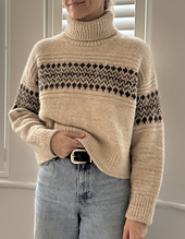 * Yarns used in pictures are: Alpaca Blow by Sysleriget and Brushed Deluxe by Sysleriget both in shade Sandstone for the main colour and Alpaca Blow by Sysleriget in shade Pecan Brown held together with Brushed Deluxe by Sysleriget in shade Gateau Marcel for the contrast colour.