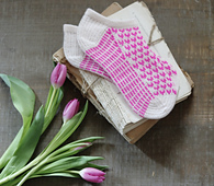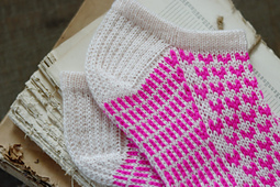 Knit a little love into every stitch. These anklet socks are a simple yet charming heart colorwork motif, perfect for gift-knitting or treating yourself to something sweet. This pattern is fun and quick to knit. Make a pair with two solid colors or go crazy with scrappy colors.