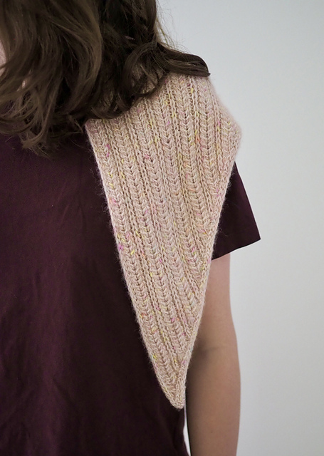 This shawl, featuring an allover textured pattern with small cables, is perfect for using a precious yarn – those hand-dyed treasures from a festival or a sheepy yarn you can trace from paddock to finished skein. The 100s & 1000s shawl has an allover textured pattern featuring mini cables and slipped stitches inside a border of i-cord. It is an easily memorisable and engaging pattern, perfect for showcasing beautiful yarns.