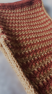 Para além da sua construção específica, para o embelezar há um trabalho a duas cores, o ponto pied-de-poule e para um acabamento perfeito, as bordas i-cord em crochet, com vídeo explicativo desta técnica.