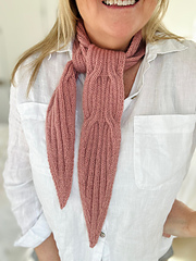 The Ebbs and Flows Scarf is worked in a 2 x 2 rib cable pattern. It can be started with a wider or pointy tip.
