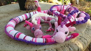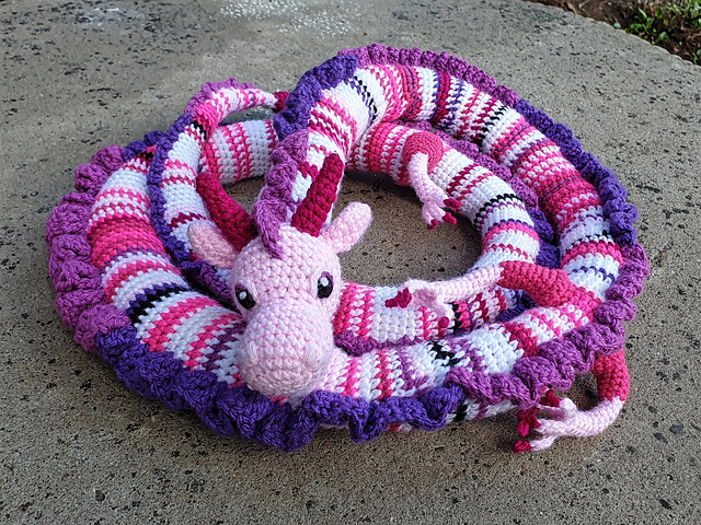 I had the bright idea to do a year temperature blanket and then wanted to do a temperature snake tracking a different metric at the same time, but I didn't want it to be a snake, and so the Long Dragon was created! If you value your sanity I wouldn't recommend doing both projects at the same time. This guy works as a variable length dragon as well as a year project. You can make him any length you want for various reasons and uses. He's friendly at least.