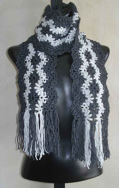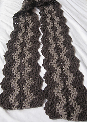 It's crocheted lengthwise in a great lacy, wavy, intricate-looking stitch pattern. Wavy stripes are easily achieved by changing yarn colors for 2 rows. The generous length is perfect for wrapping loosely around your neck for a nonchalant look.