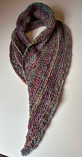 This is a crescent shaped scarf, worked top down. It is knit flat and is approximately 65" long x 14" deep.