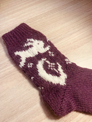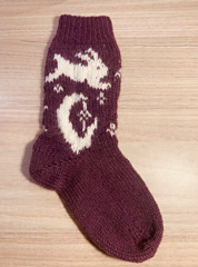 This sock pattern is worked cuff-down with german short row heels, and charted colourwork.