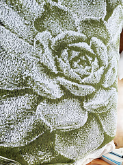 The amount of yarn used for this pattern by my tester without the border was: 4 giant Balls, 4160 meters / 4549,43 yards (colour White) and 3 ½ giant Balls, 3640 meters / 3980,75 yards (colour Green Grass)