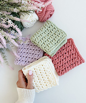The Honey Weave Dishcloth features an open, airy stitch pattern with beautiful texture created using double crochet and a crossover treble crochet stitch for a woven look.