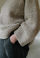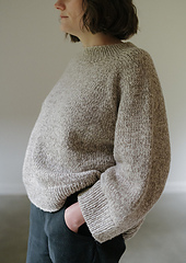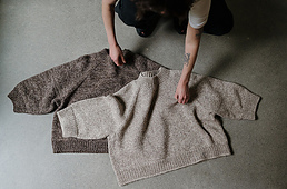 This is a raglan style sweater that is worked top down. First the collar is knit, then German short rows are worked to shape the neckline. Then you’ll continue the raglan increases to create the yoke. The yoke is knit quite deep to mimic the proportions of a Babaà sweater. Additional rows are knit in the back before splitting for the sleeves to help raise the back and to create a more oversized roomy fit. There are two sleeve length options to customize the desired fit.