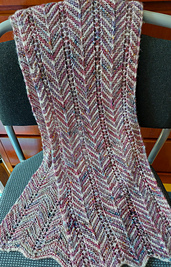 This garter stitch scarf features chevron lace. It can be knit in any size with any type of yarn.