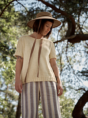**Yarn:** 5 (6, 7, 7, 8) (9, 10, 11, 12) balls of Line by Sandnes Garn (53% cotton, 33% viscose, 14% linen, 120 yds / 110 m – 50 g), in the colourway 2112 Light Yellow.