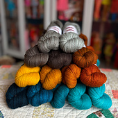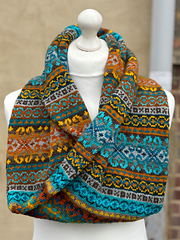 A Fair Isle-inspired cowl (coordinating hat available seperately) knit with a heavier-weight fingering. For best results, I would recomment a woollen-spun yarn such as my own hand-dyed 'Fat Fingering' or Jamieson's 'Spindrift'.