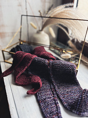 - un petit foulard double épaisseur à tricoter avec 2 brins de light fingering tenus ensemble (soit 50g en tout).