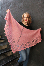 I consider the Beeblossom Shawl to be the sophisticated older cousin of my Helia Shawl design, which has long been a favorite in the Greenwood Fiberworks booth. Knit at a large gauge with fingering weight wool and laceweight mohair/silk held together, the shawl shares Helia’s very wearable shape from extra edge increases, but with additional size and fluffy fabric. A touch of pretty lace elevates the lower edge. Beeblossom works up quickly and would make a special gift (after you’ve made one for yourself, of course!).