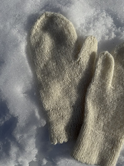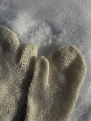 The Chloe Mittens are a pair of simple mittens with feminine details. They are worked from the wrist up in stockinette. The cuff is folded with a picot edge, and the mitten is shaped with increases for the thumb and decreases at the top.