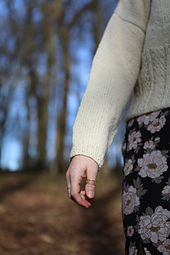 Mon pull est réalisé en taille 92 (15 cm d’aisance positive sur moi) avec 3 écheveaux de [Berto][1] (70% Ile-de-France 30% Mérinos d’Arles – 250 m) de chez [La Fabrique Poveda][2] en coloris Naturel.