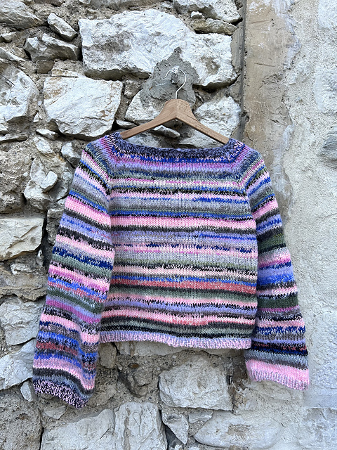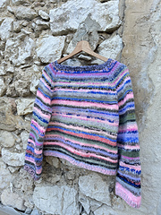The Camille Sweater is a colorful project, to use up all of your scarp yarns. It is beginner friendly and worked top-down with raglan increases. Optional, you can add a neckline.