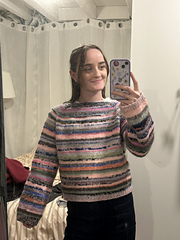 All of your scrap yarns (the fiber doesn’t matter although I’d suggest sticking to similar materials for one sweater).