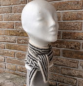 This Skinny Scarf #1 is - as you may have guessed - a small scarf, 13 cm wide, meant to wear tightly around the neck. The length is easily adjusted to reach 1 or 2 times around the neck.
