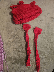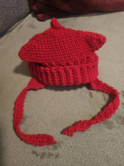This is a crochet version of the MTI hat for small dogs (dachshund) and done in the stitches used for the original crochet version. Any chunky/ worsted weight yarn will work. I used Robin Chunky 100% acrylic to be able to wash it.